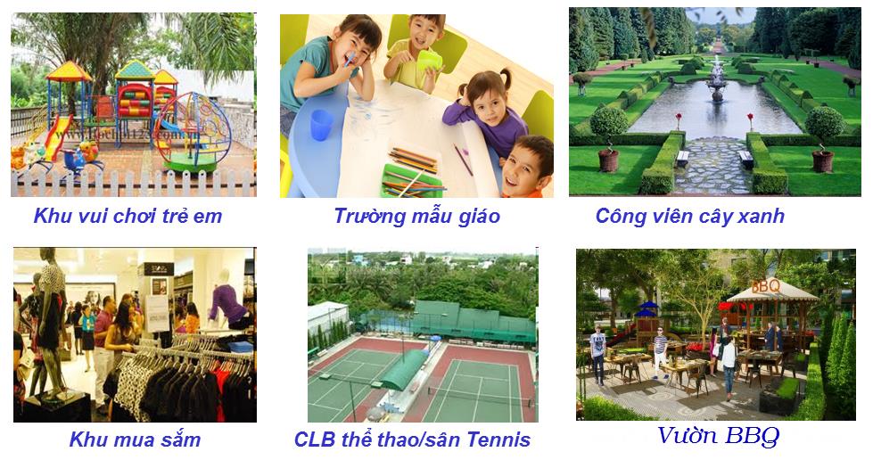 - Vườn yoga, vườn nướng BBQ, bãi đỗ xe...