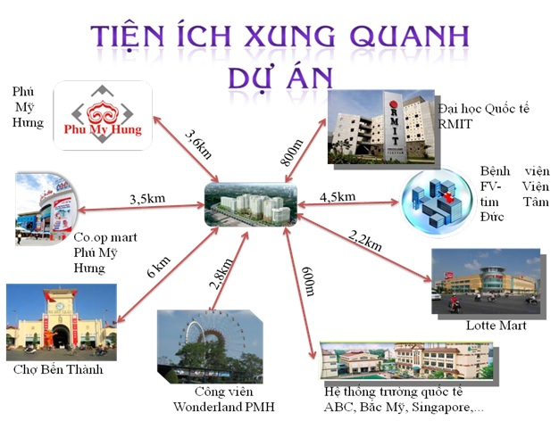 - Trung tâm thương mại : dự án cáchSC VivoCIty 7 phút , The Cresent Mall 11 phút , Vietopia 4 phút ,Parkson Paragon 11 phút