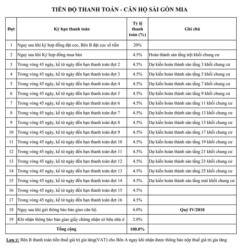 Lộ trình thanh toán Sài Gòn Mia
