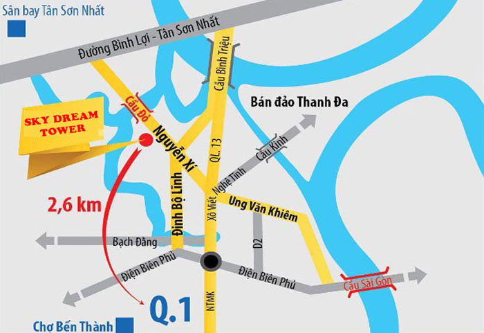 Chung cư tọa lạc trong khu dân cư cao cấp, an ninh và yên tĩnh với nhiều tiện ích nội khu. Dự án gần Trường đại học Ngoại Thương, ngã tư hàng xanh 800m, cách trung tâm quận 1 chỉ 3km và chỉ mất 10 phút tới Diamond Plaza, Vincom Center, chợ Bến Thanh, nhà thờ Đức Bà, siêu thị Coop Mark, Đại học Giao thông Vận Tải, Đại học Công nghệ Tp.HCM,...