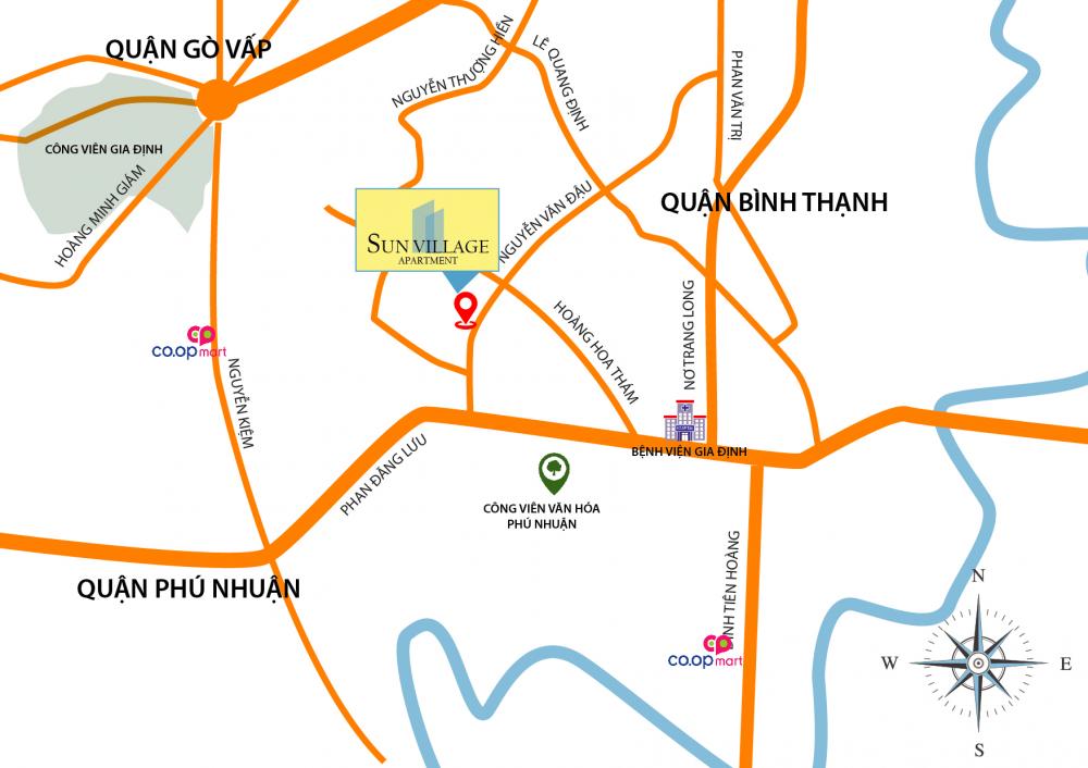 Sun Village Apartment tọa lạc ở vị trí đắc địa, tại số 31-33 Nguyễn Văn Đậu, quận Bình Thạnh, Tp.HCM.
