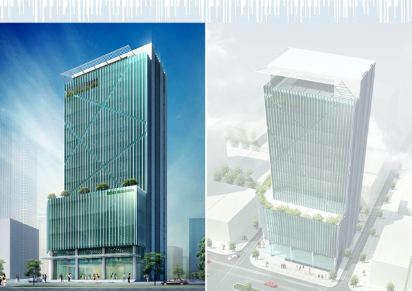 Chiều cao công trình 54,6m, tầng 1 cao 4,2m; tầng 2 đến tầng mái chiều cao tầng là 3,6m. Tòa nhà gồm 02 thang máy, 01 thang bộ và 01 thang sắt thoát hiểm. Bố trí công trình gồm một sảnh chính, một lối vào thang bộ xuống tầng hầm và một đường dốc xuống tầng hầm. Kết cấu khung bê tông cốt thép chịu lực, vách kính bao che. Mặt đứng công trình được thiết kế hiện đại, phù hợp với công năng sử dụng.