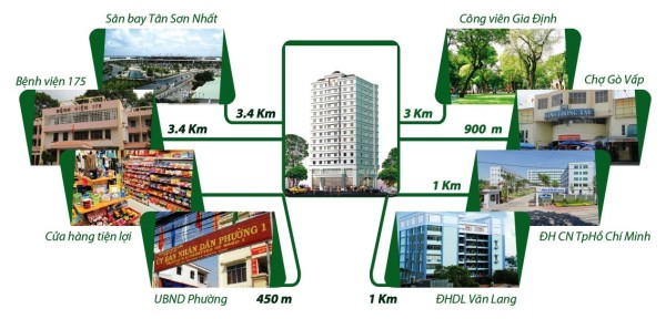 Từ dự án này có thể nhanh chóng di chuyển về các tỉnh miền Đông hoặc sân bay Tân Sơn Nhất. Cư dân tại đây được thụ hưởng toàn bộ cơ sở hạ tầng dịch vụ của khu vực trung tâm sở hữu vị trí kết nối trọng điểm với các quận Gò Vấp, Bình Thạnh, Thủ Đức và Tân Bình.