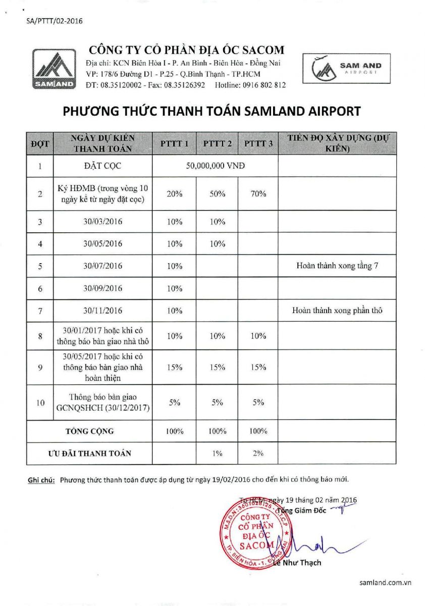 Tiến độ Quý I/2016 (Ngày 28/02/2016) Samland Airport