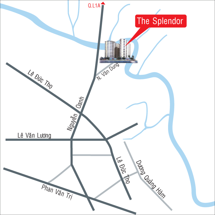 The Splendor nằm trên đường Nguyễn Văn Dung, phường 6, quận Gò Vấp, Tp.HCM. Dự án nằm sát bờ sông Bến Cát và cách cầu An Lộc khoảng 800m, một vị trí rất thuận lợi cho việc kết nối giao thông với các tỉnh lân cận như Bình Dương, Đồng Nai, Tây Ninh…