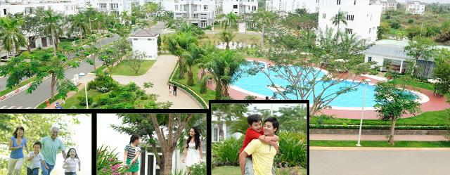 - Khu công viên cây xanh, hồ bơi
