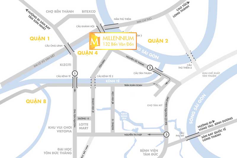 Chung cư Masteri Millennium được xây dựng tại số 132 Bến Vân Đồn, phường 6, quận 4, Tp.HCM. Dự án có vị trí đắc địa, nằm dối diện với trung tâm hành chính quận 1 và Ngân hàng Nhà nước với những công trình kiến trúc tượng trưng cho thành phố như tòa nhà Betexco, Sở giao dịch Chứng khoán Tp.HCM.