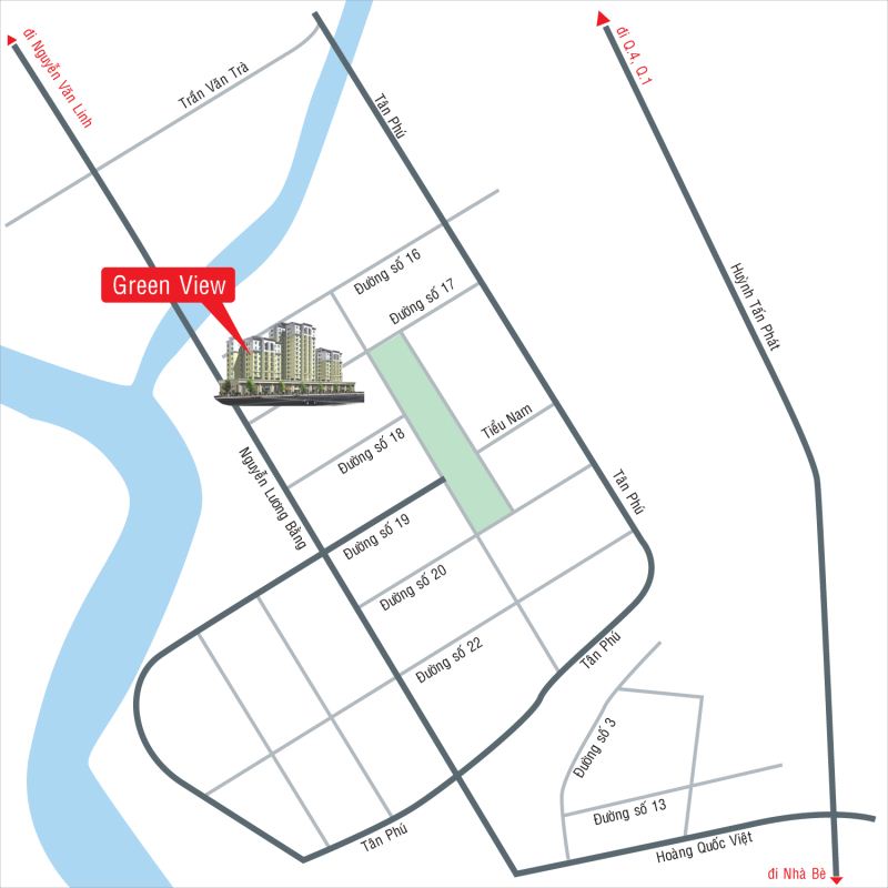 Green View tọa lạc Lô đất S1-3, Khu Nam Viên, Đường Nguyễn Lương Bằng, Phường Tân Phú, Quận 7, Tp.HCM.