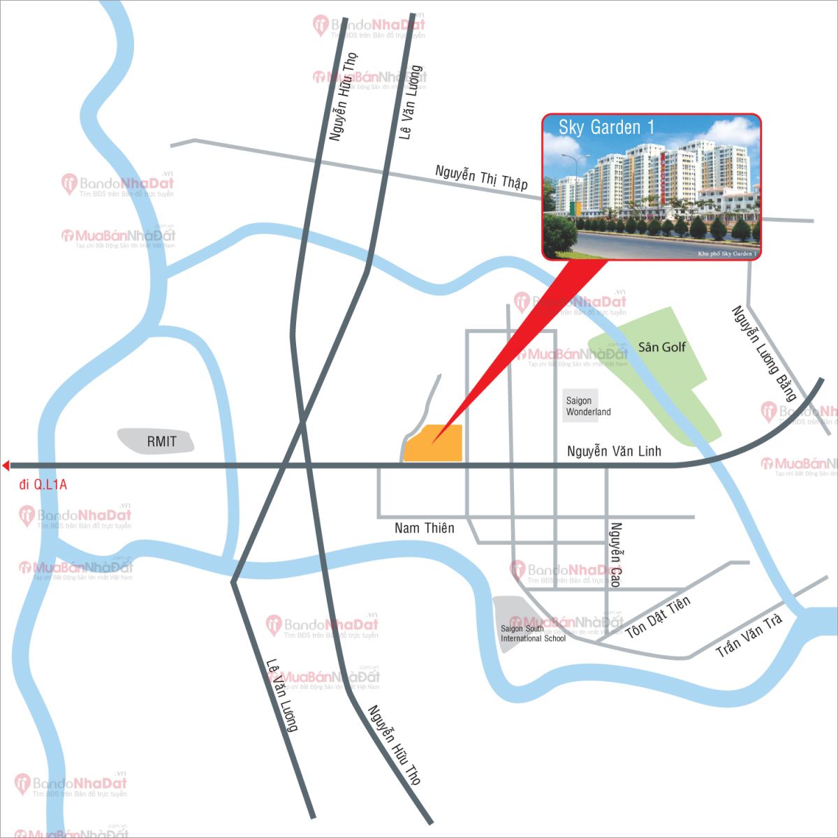 Sky Garden I tọa lạc trên đại lộ Nguyễn Văn Linh, ngay cửa ngõ phía Tây vào đô thị Phú Mỹ Hưng - trong khu dân cư - văn hóa - giải trí. Vị trí rất thuận tiện cho việc đi lại, giao dịch.