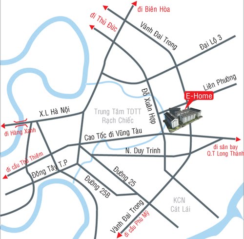 Bên cạnh những tiện ích sẵn có trong một môi trường trong lành, Ehome 2 còn sở hữu một vị trí rất thuận lợi. Chỉ cần khoảng 25 phút, bạn đãcó thể đi đếntrung tâm quận 1 (qua đường Nguyễn Duy Trinh, cầu Thủ Thiêm), đếnkhu đô thị Nam Sài Gòn quận 7, các khu công nghiện như Sóng Thần, Khu chế xuất Linh Trung,...