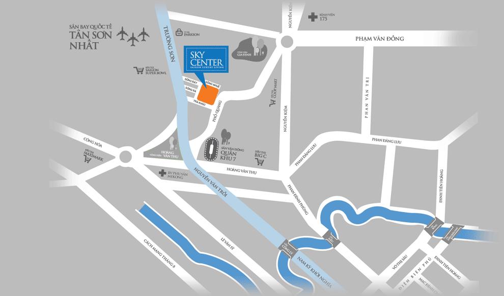 Tọa lạc ở vị trí đắc địa, ngay khu vực kết nối với sân bay Tân Sơn Nhất, dự án khu căn hộ Sky Center thừa hưởng tất cả những lợi thế về hạ tầng và tiện ích hiện hữu.