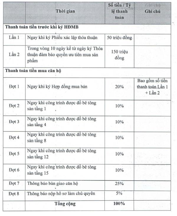 Phương thức thanh toándự án Opal Riverside