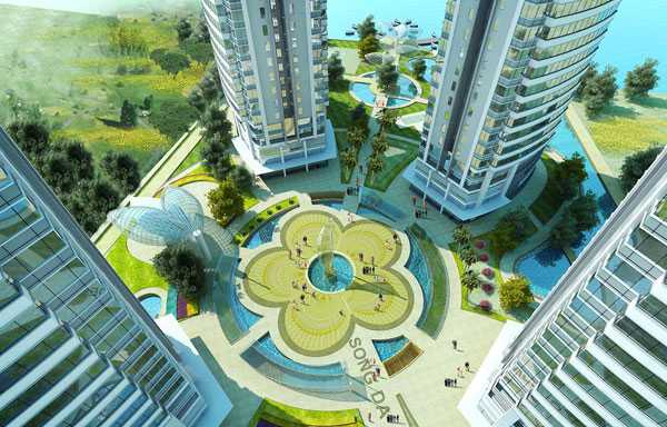 Xung quanh các tòa tháp là vườn hoa, mặt nước cảnh quan. Rạch Lò Đường hiện hữu sẽ được cải tạo, nắn tuyến trở thành dòng sông cảnh quan và khu hồ sinh thái. Khu hồ này sẽ được kết nối với Bến du thuyền nằm trên sông Sài Gòn nhằm đáp ứng nhu cầu giao thông thủy cho dự án, đồng thời sẽ là điểm đưa khách đi tham quan du lịch trên sông Sài Gòn. Theo quy hoạch giao thông thủy, thì từ Bến du thuyền này có thể đi tới Vũng Tàu và các tỉnh Đồng bằng Sông Cửu Long hay đến các bãi biển nằm dọc đất nước. Đây cũng là điểm nhấn khác biệt trong đồ án thiết kế thể hiện tầm nhìn quy hoạch vượt trội của chủ đầu tư.