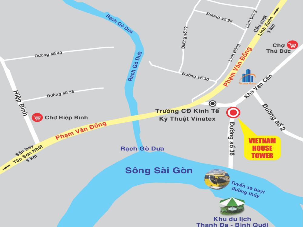 Vietnamhouse Tower tọa lạctrên trục đường Kha Vạn Cân, Linh Đông, Thủ Đức, TP. HCM và chỉ cách đườngPhạm Văn Đồng 200m.