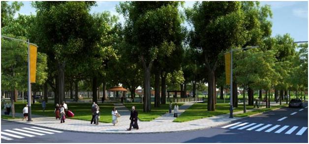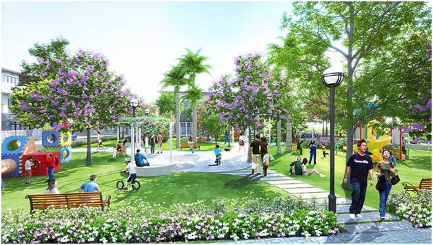 Công viên với hệ thống cây xanh nhiều bóng mát và khu vui chơi dành cho trẻ em