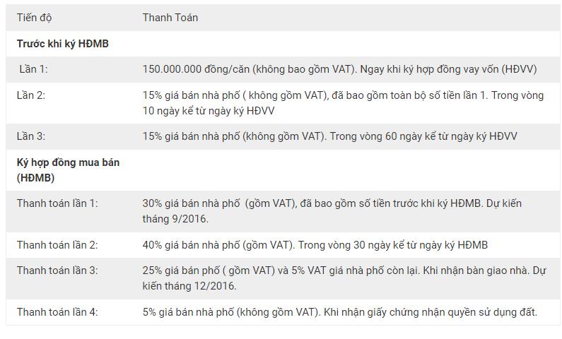 Lộ trình thanh toán Vincom Shophouse Phủ Lý