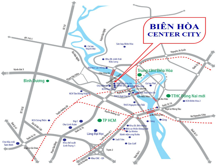 Bên cạnh hệ thống tiện ích nội khu hoàn thiện, cơ sở hạ tầng đồng bộ với đường trải nhựa lớn, cây xanh, vỉa hè sạch đẹp,Khu đô thị Biên Hòa Center City còncó kết nối thuận lợi đến các tiện nghi cần thiết cho cuộc sống.
