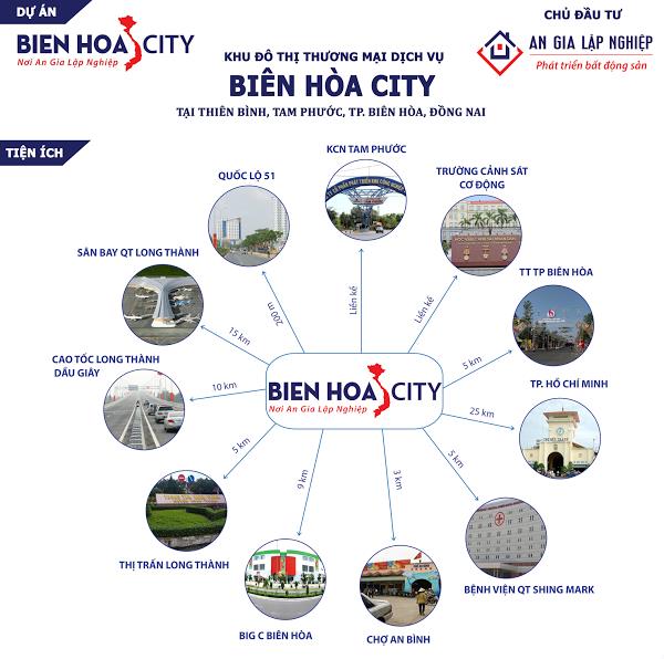 Khu đô thị Biên Hòa Citylà một sản phẩm củaCông ty CP Bất động sản An Gia Lập Nghiệpvớitổng diện tích quy hoạch50 ha. Dự án được chia thành 2 giai đoạn với tổng số sản phẩm lên đến1100 nền đất xây dựng tự do, 150 biệt thự cao cấp và 700 nhà phố liền kề.