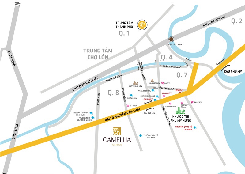 -Vị trí nhà phố Camellia Garden: Đường Nguyễn Văn Linh, huyện Bình Chánh, Tp.HCM
