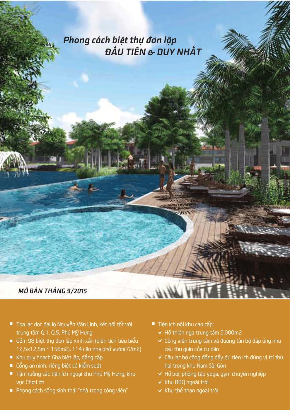 Bên cạnh các tiện ích nội khu đẳng cấp, Cư dân dự án còn được tận hưởng đầy đủ loạt tiện ích ngoại khu: Siêu thị Co.op Mart, Lotte Mart, hệ thống các trung tâm thương mại hiện đại, dịch vụ tài chính ngân hàng của Khu Đô thị mới Phú Mỹ Hưng, đại học Tôn Đức Thắng, trường đại học RMIT, đại học Marketing, bệnh viện Tâm Đức, bệnh viện Pháp Việt,Nhà trẻ – mẫu giáo, trường cấp I – II, Biệt thự Dương Hồng Garden, trung tâm thương mại, hồ bơi, trung tâm y tế, và công viên cây xanh – thể dục thể thao.