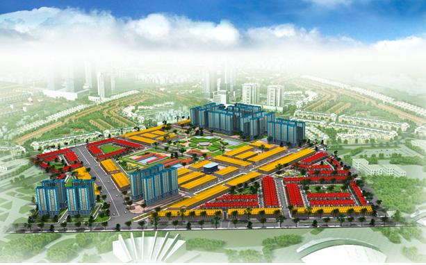 - Khu A: Tổng DT khu đất là 196.953 m2: gồm 759 căn nhà liên kế vườn, 1 nhà trẻ mẫu giáo và 3 mảng công viên cây xanh thể dục thể thao.