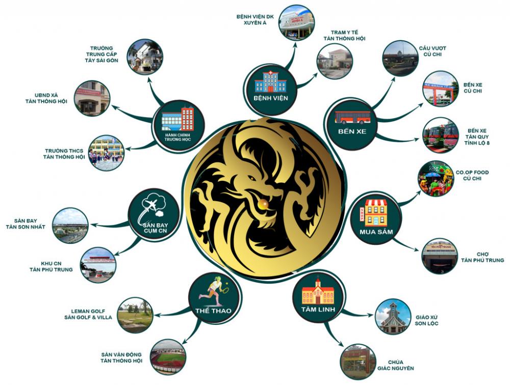 - 3.5km đến Leman Golf – Sân Golf – Khu Villa, Trạm Y tế Tân Thông Hội, Giáo xứ Sơn Lộc – Củ Chi