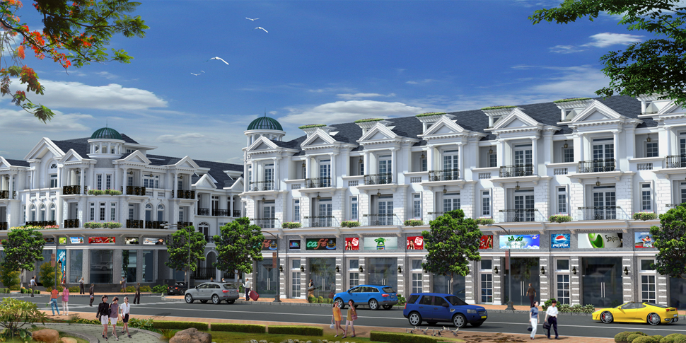 - Nhà phố thương mại có 30 căn diện tích 6x21 (126 m2).