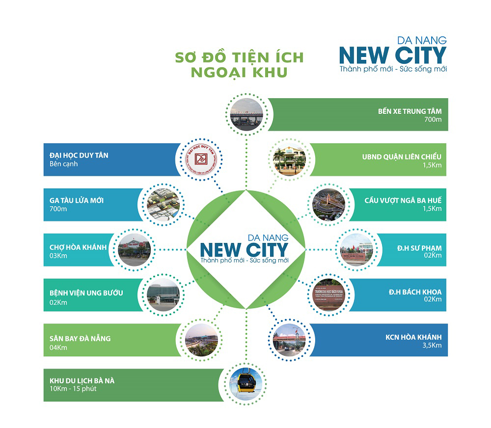 New Đà Nẵng City hội tụ đầy đủ các dịch vụ, tiện ích đẳng cấp từ trung tâm thương mại,trường học, rạp chiếu phim, hệ thống chăm sóc sức khỏe, rạp chiếu phim, trung tâm thương mại, khu công viên nước,bệnh viện quốc tế, khu liên hợp thể dục thể thao... mang cuộc sống hoàn hảo nhất cho cư dân.