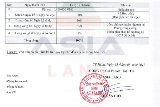 - Phân phối phát triển dự án: Công ty CP Đầu tư Aisia Land