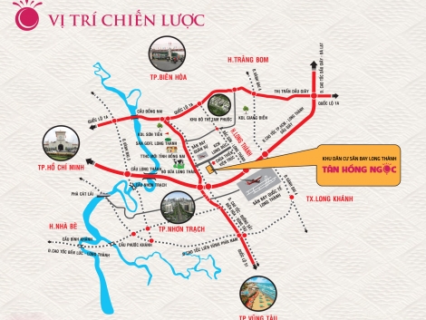 Khu dân cư sân bay Long Thành - Tân Hồng Ngọc được ví như một thành phố phức hợp - thành phố sân bay tầm cỡ thế giới. Dự án có quy mô 26 nghìn ha với mục đích phục vụ nhu cầu thương mại dịch vụ, kinh doanh và vân chuyển hàng hóa. Trong tương lai, khi sân bay Long Thành đi vào hoạt động, khu dân cư sẽ phát triển hơn nữa.