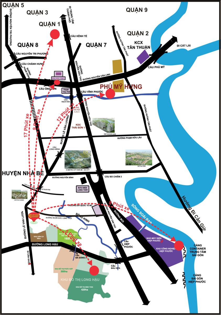 + Đến Khu đô thị Cảng Hiệp Phước, KCN Long Hậu chỉ 5km qua tuyến Long Thới- Nhơn Đức, Nguyễn Văn Tạo hoặc Nguyễn Bình.