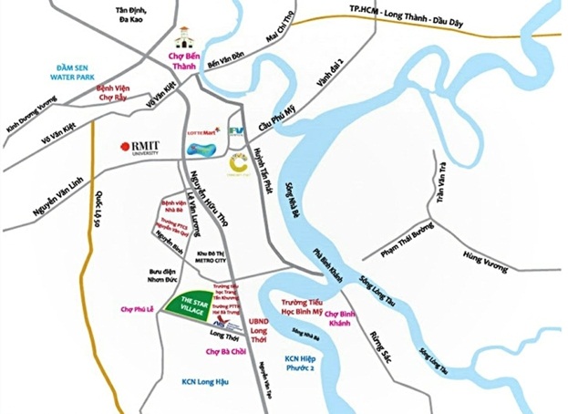 Dự ánThe Star Villagetọa lạc tại vị trí đắc địa trên địa bàn Xã Nhơn Đức, Nhà Bè, Tp.HCM -nơi giao nhau của các trục đường lớn, giáp sông, giáp chợ, trường học, và ủy ban... sẽ cho bạn một cuộc sống an tâm, an toàn và thoải mái nhất.