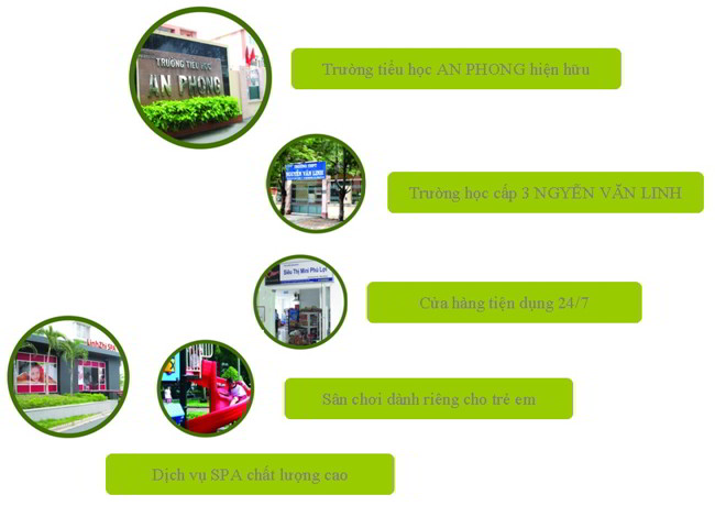 - Trường cấp tiểu học An Phong, trường THPT Nguyễn Văn Linh.