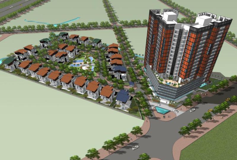- Quy mô dự án 26 lô biệt thự đơn lập, song lập và một khối chung cư cao cấp cao 17 tầng