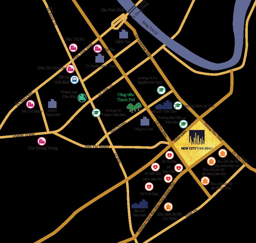 New City Thái Bình sở hữu vị trí đep, chỉ cách đặc khu hành chính tỉnh Thái Bình 1.5km. Dự án có 3 mặt tiếp gián với tuyến giao thông chính của thành phố, đó là đường Hoàng Văn Thái, Lê Quý Đôn, vành đai phía Nam và liền kề khu dân cư sôi động của thành phố.