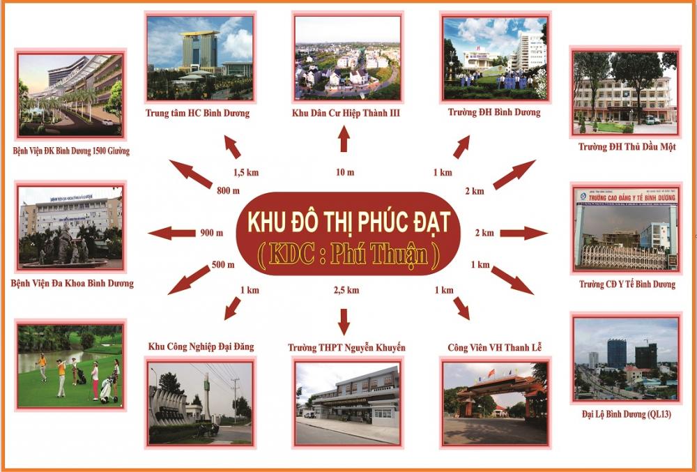 KĐT Phúc Đạt có diện tích quy hoạch lên đến 19ha, được triển khai với quy mô 1.200 nền gồm nhà phố, biệt thự. Tọa lạc ngay trung tâm TP. Thủ Dầu Một thuộc khu tam giác vàng kết nối các vùng kinh tế KCN lớn trọng điểm của tỉnh Bình Dương - Tp.HCM- Đồng Nai, dự án hứa hẹn sẽ đem lại giá trị sinh lời tốt trong tương lai gần cho các nhà đầu tư nhạy bén.