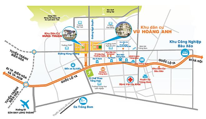 Dự án Hưng Thuận có tổng diện tích 12ha, nằm trong tổng thể khu đô thị Trảng Bom 55ha. Dự án có quy mô74 đất nền biệt thự, 424 đất nền nhà liên kế, 146 nhà tái định cư.