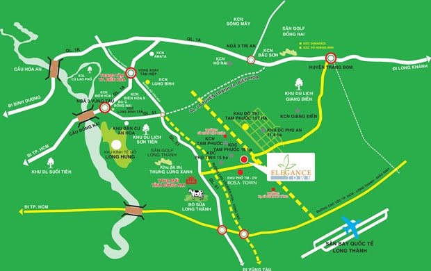 Khu phố thương mại Elegance Town thuộctổng thể quy hoạch Khu đô thị Tam Phước rộng300ha, nằm trênmặt tiền đường vành đai Biên Hòa - Sân bay quốc tế Long Thành lộ giới 45m, thuộc Xã Tam Phước, TP. Biên Hòa, tỉnhĐồng Nai.
