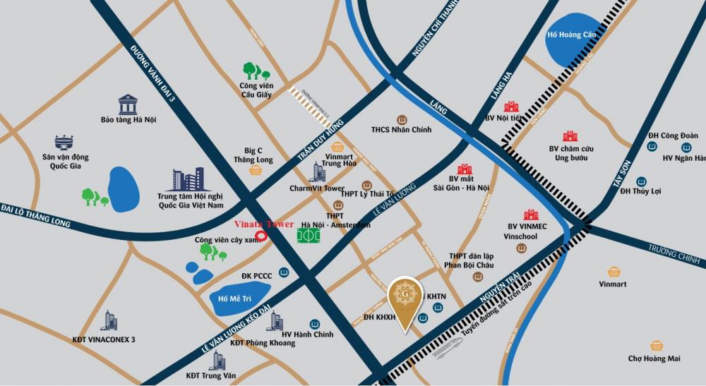 Dự án Vinata Tower cách bến xe Mỹ Đình 800m, trường chuyên Hà Nội Amsterdam 500m, siêu thị Big C 200m; gần ngay khu đô thị Trung Hòa Nhân Chính, trường mầm non quốc tế Sao Hà Nội, gần Trung tâm mua sắm Vin Mart; thuận tiện cho lưu thông: Trung tâm Hà Nội, sân bay quôc tế Nội Bài, quốc lộ 6…