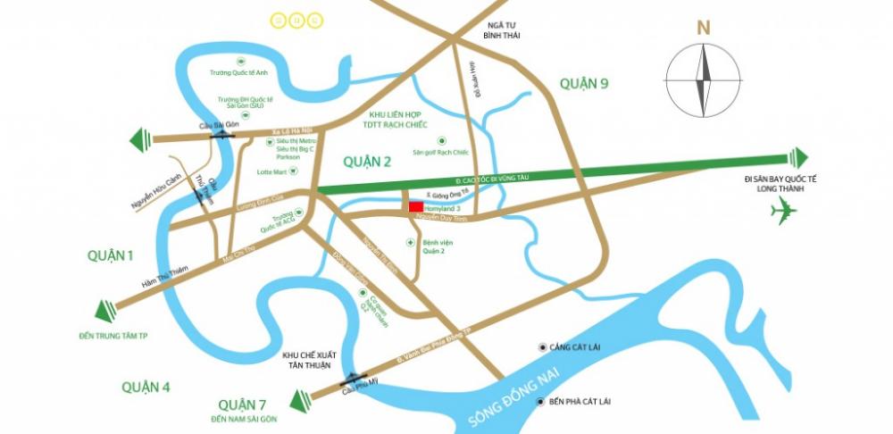 Chung cư Homyland 3 quận 2 tọa lạc trong môi trường không gian xanh bên dọc bờ sông Giồng Ông Tố thuộc khu Đông Sài Gòn, trong khu dân cư được quy hoạch hiện đại bậc nhất. Khu vực này có môi trường sông xanh, dòng sông hiền hòa hấp dẫn và đáng sống nhất Tp.HCM hiện tại.